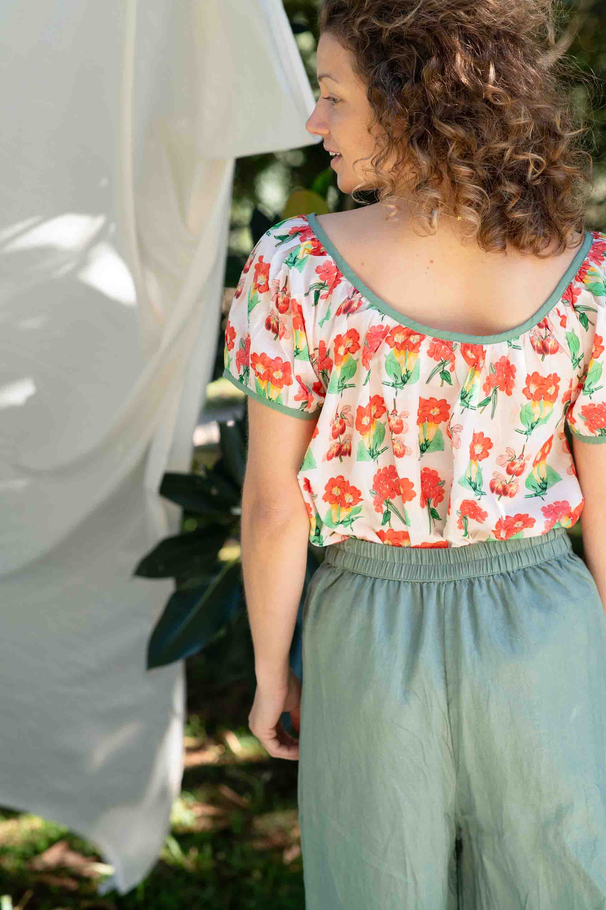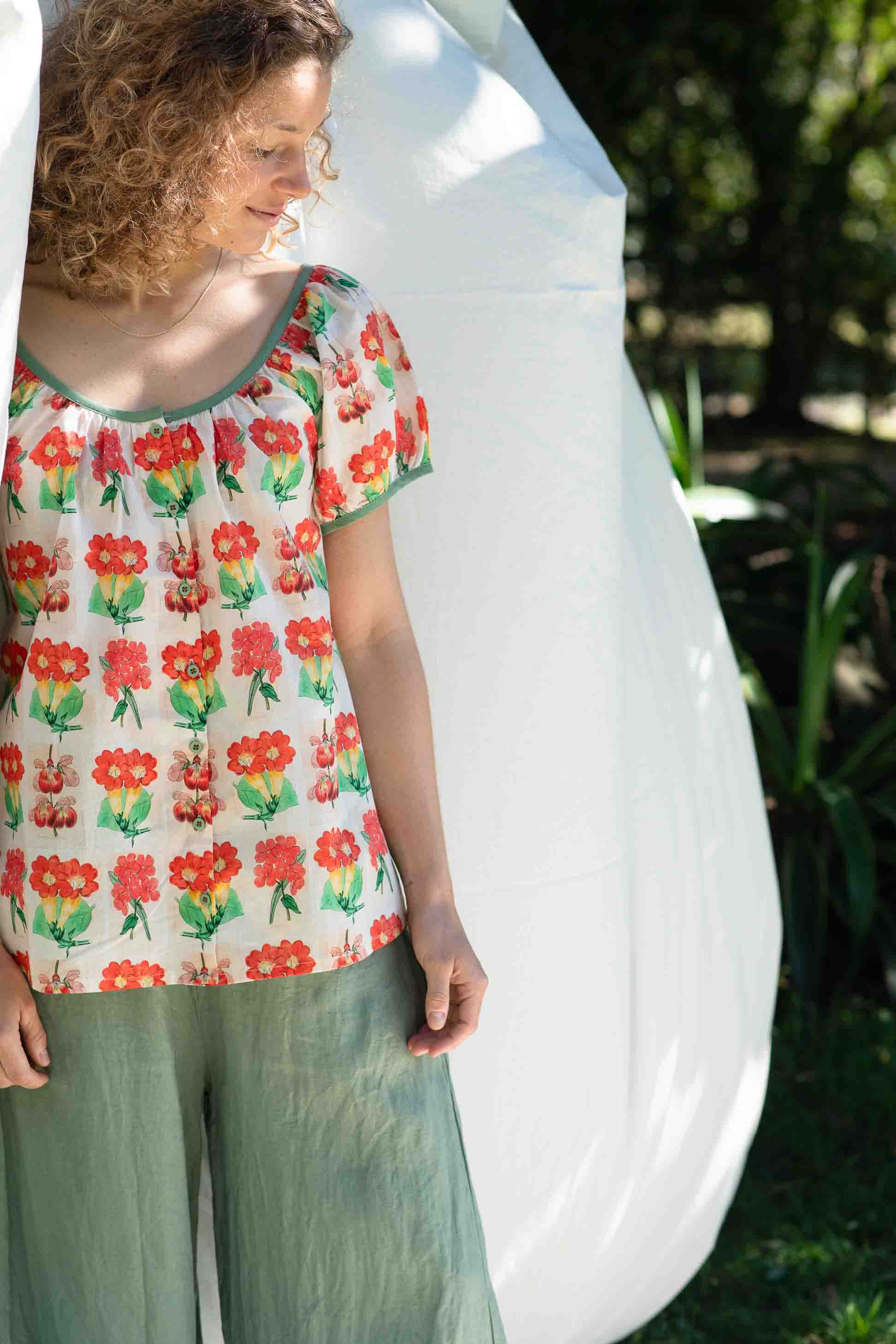 The Florabelle digital print is based on antique botanic illustrations. 100% fair trade organic cotton.