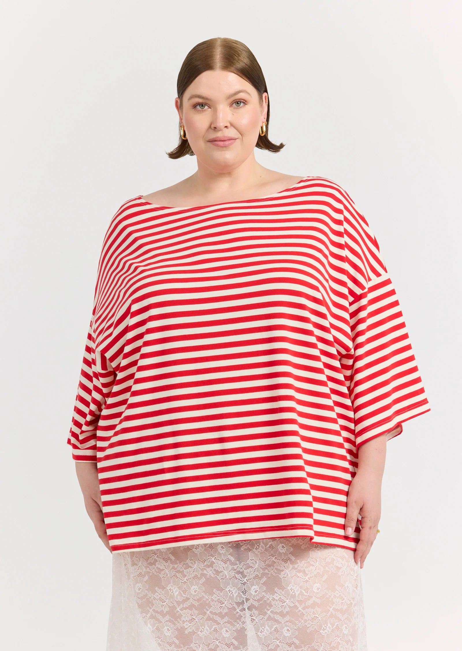 Meet the Freya Boat Neck Top – a bold yet effortless staple designed for everyday ease and modern polish. Crafted in a relaxed silhouette with a striking red and white stripe, Freya channels coastal chic with the wide boat neckline, draped sleeves, and softly structured fabric make it a statement piece that feels as good as it looks.