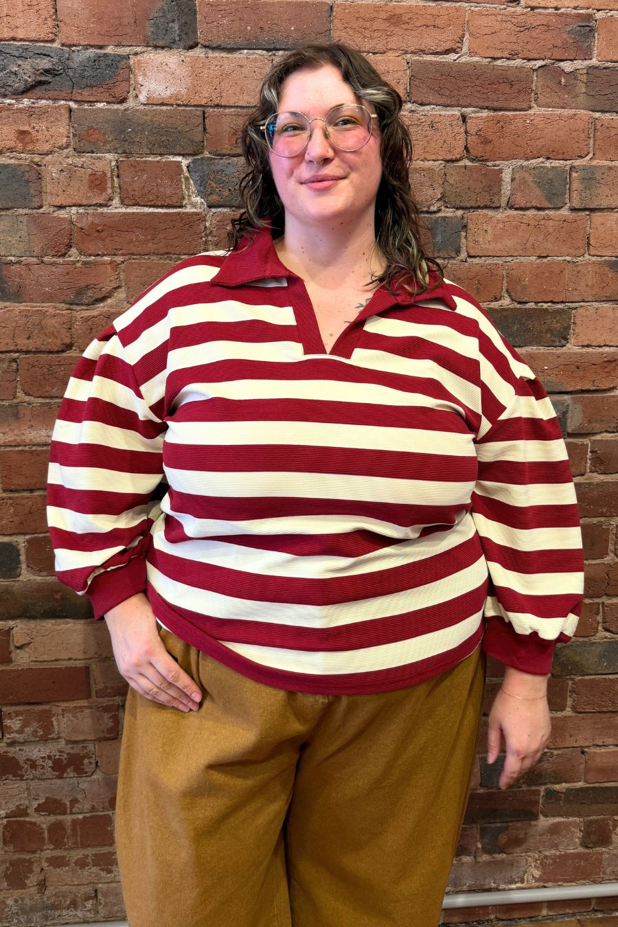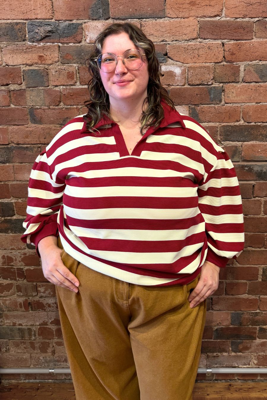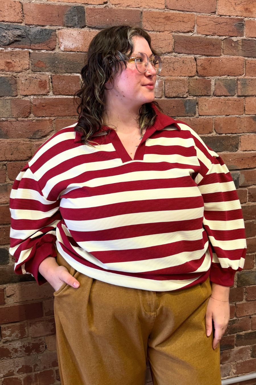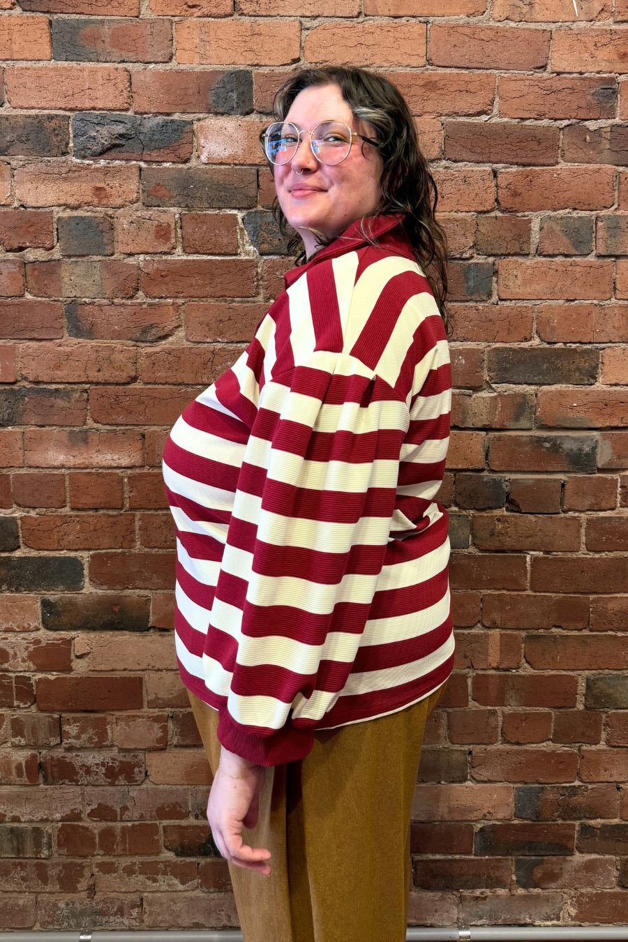 Feel relaxed but look sporty-chic in this striped ottoman pullover with contrast collar and deep V neckline. The lightweight cotton-poly blend is breathable and easy to layer. Not to mention wash & wear!