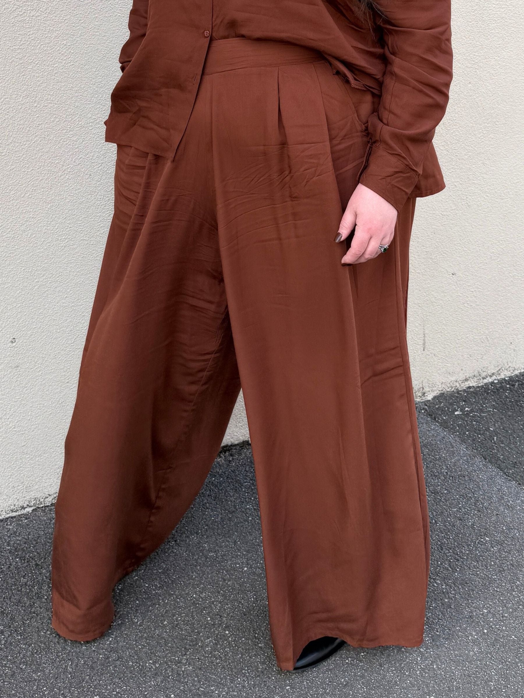 The pants are ethically made from a stunning blend of lightweight cotton & modal, which has no stretch, a lightweight breezy wear, and a soft feel. Mix and match, or pair with the matching top, to create a beautiful jumpsuit vibe without the problems of getting out of them quickly.