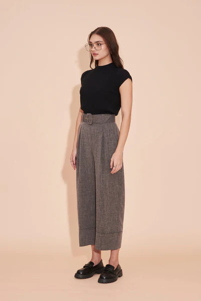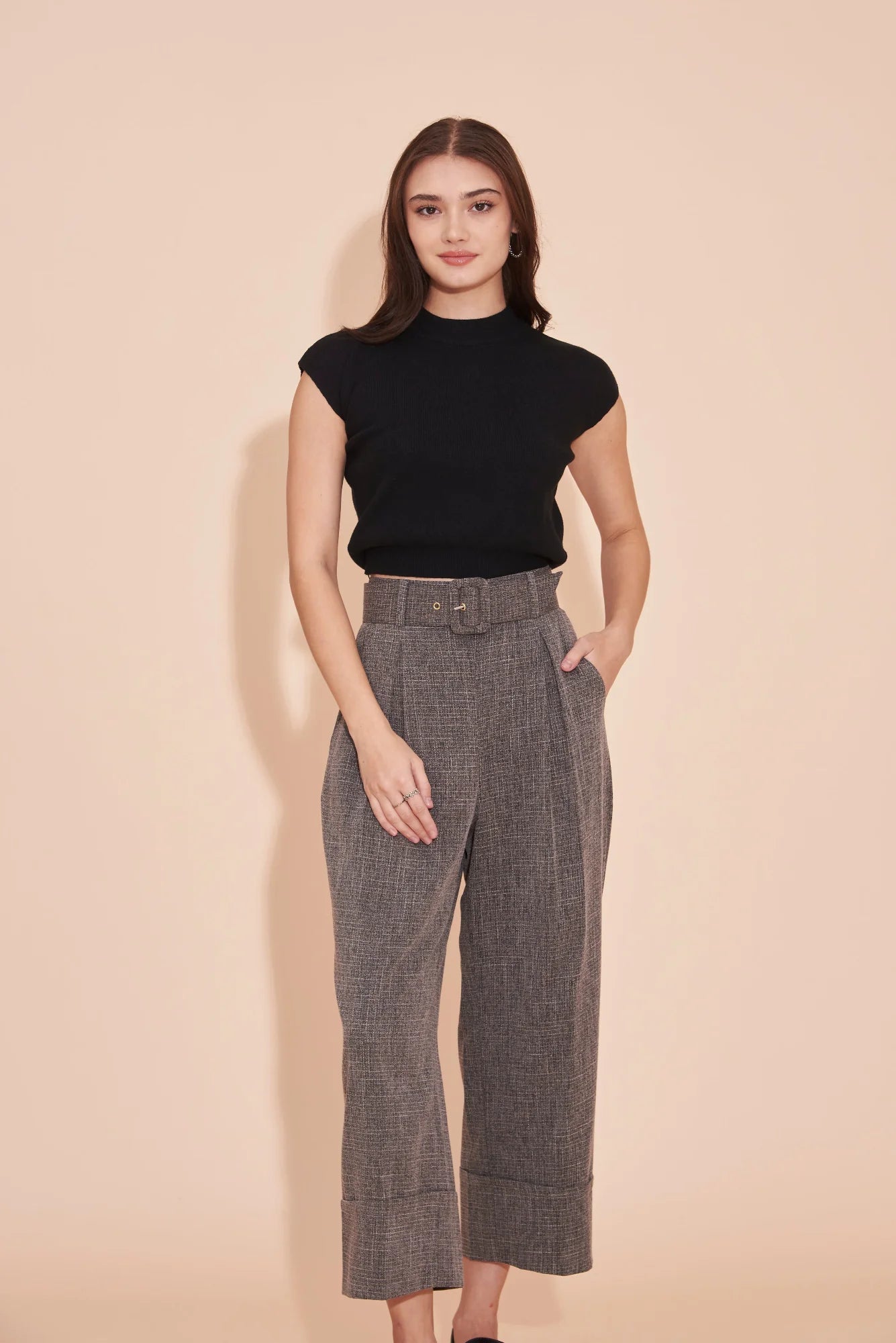 A classic high-waisted pant designed as a true wardrobe staple. Crafted from an easy-care, medium-weight fabric that’s machine-washable and wrinkle-resistant—so you can finally say goodbye to your iron. Finished with a matching belt, practical side and back pockets, and a clean cuffed hem, this pair delivers effortless style for any day of the week.