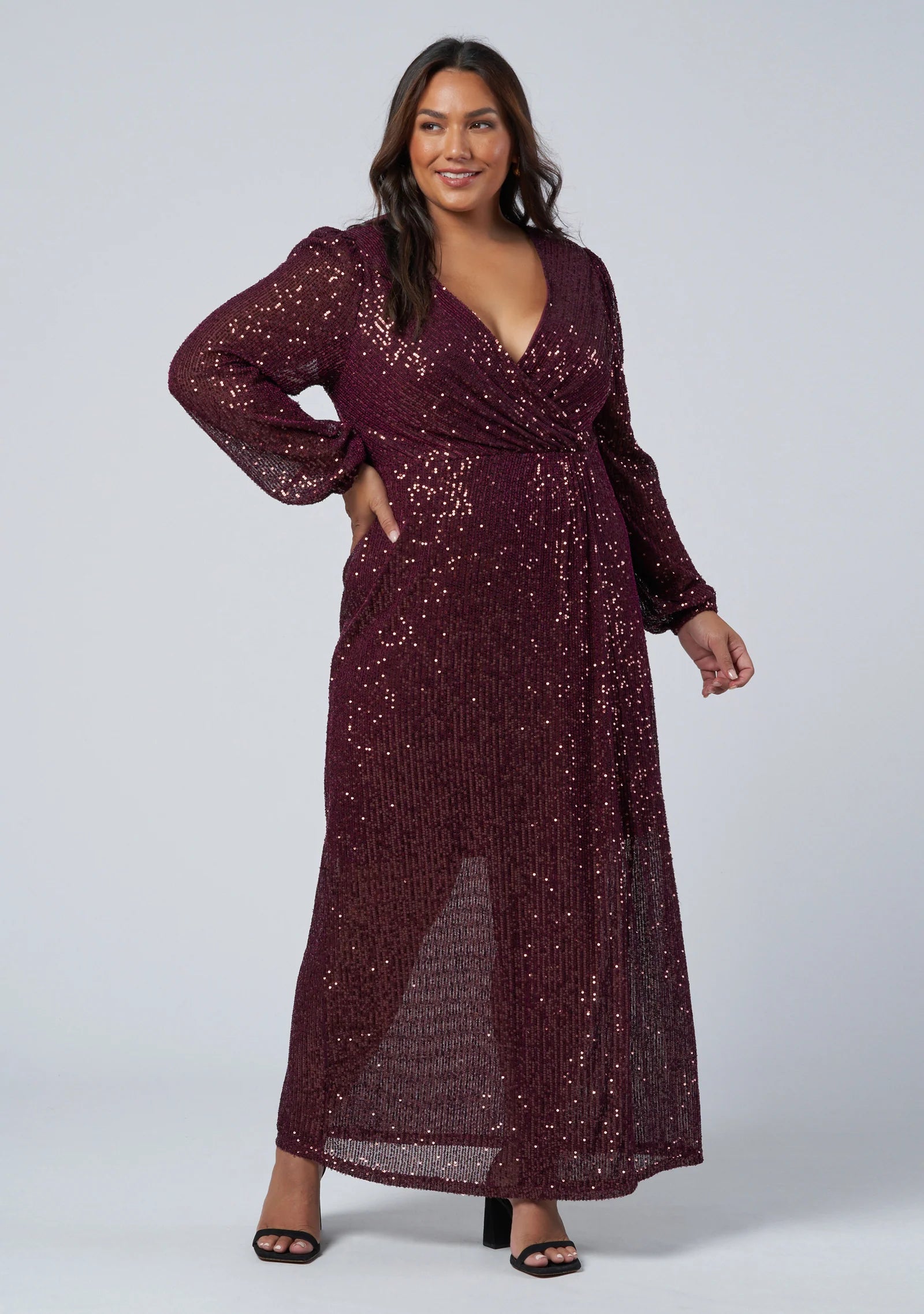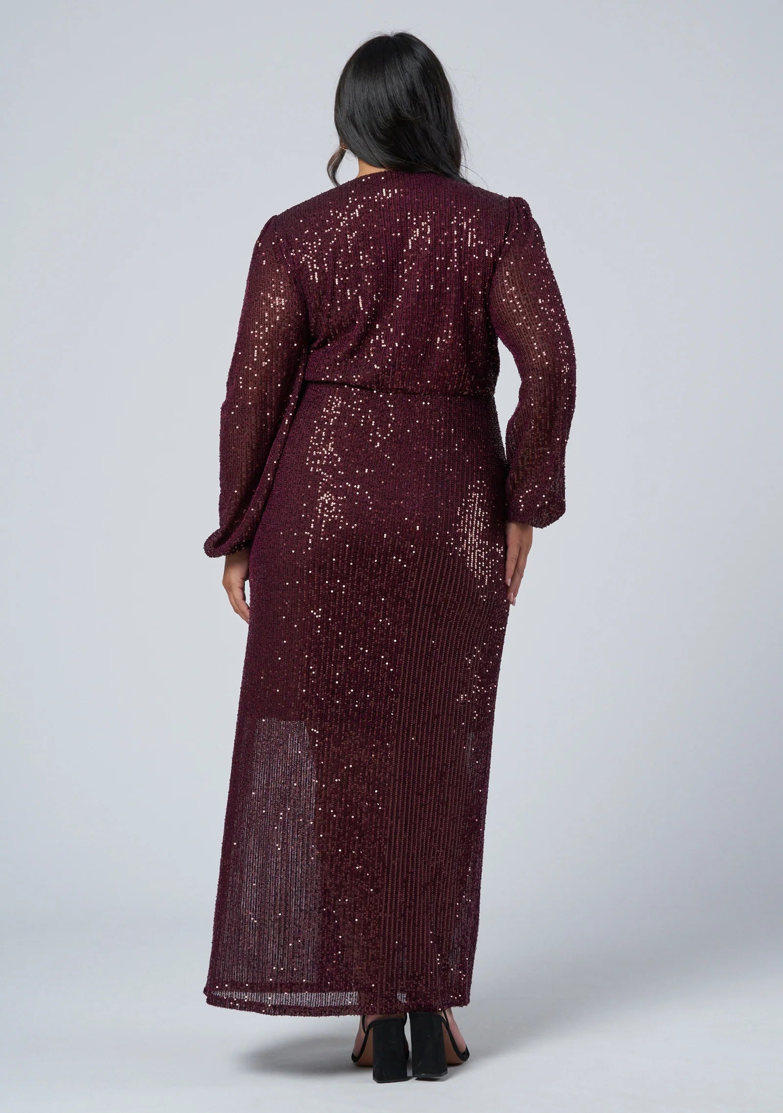 Featuring long sheer sleeves, wrap silhouette and V neckline, the All I Want Sequin Maxi Dress by Pink Dusk is a sophisticated, flirty sequin dress. Cut in an all over delicate sequin fabrication, with full stretch this is perfect wrap dress for those party days.