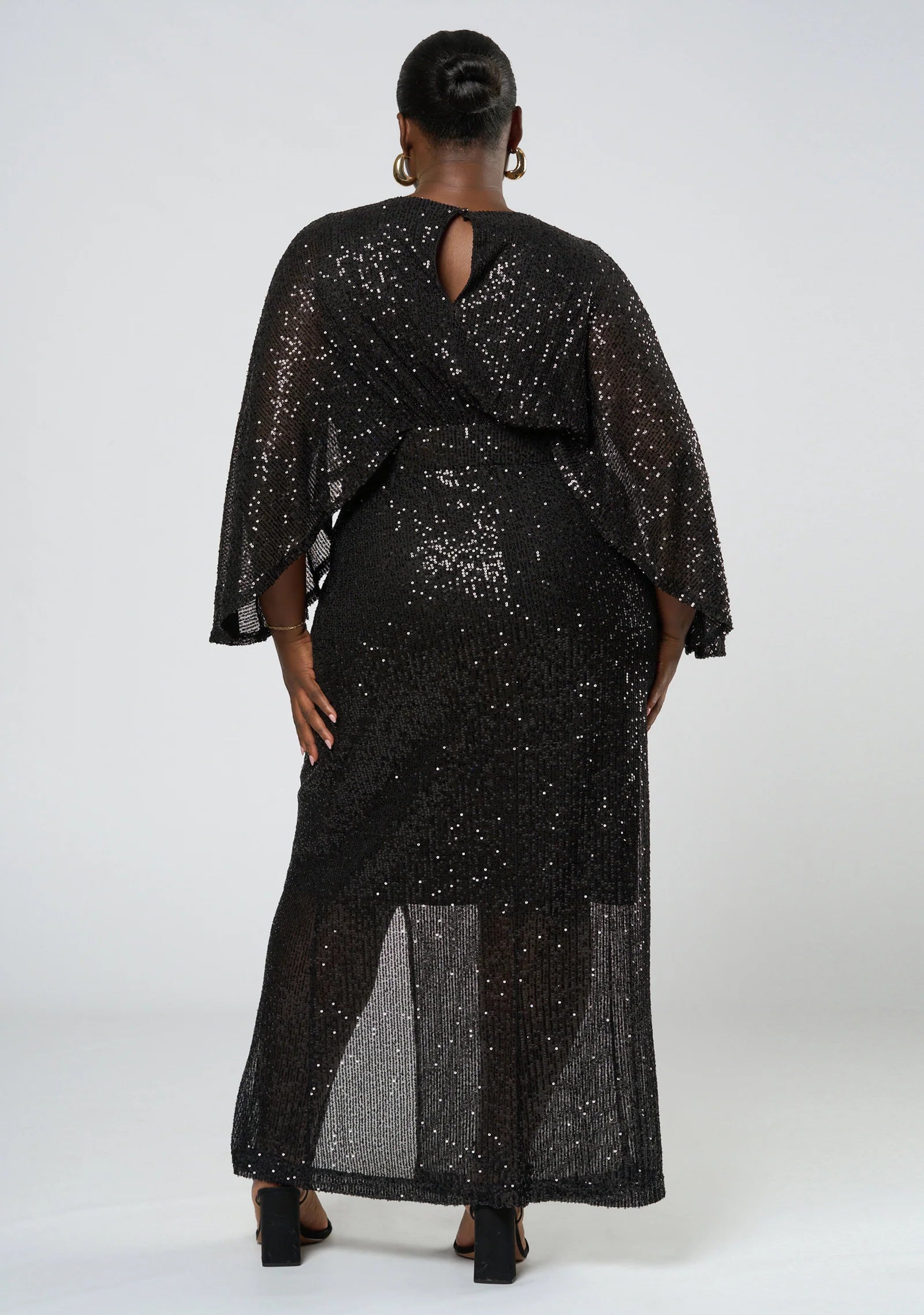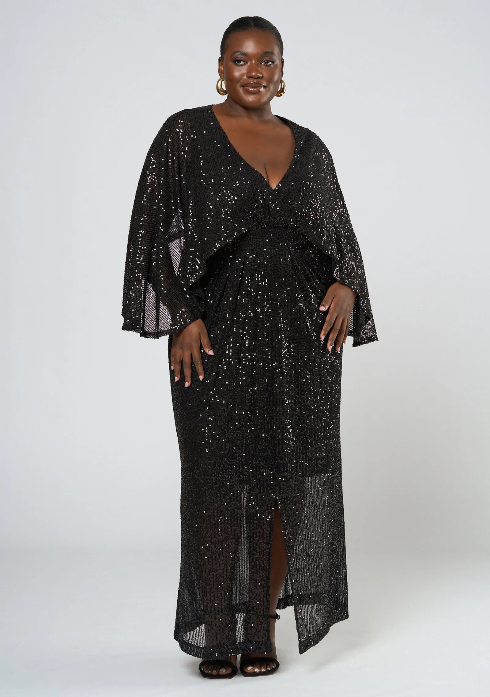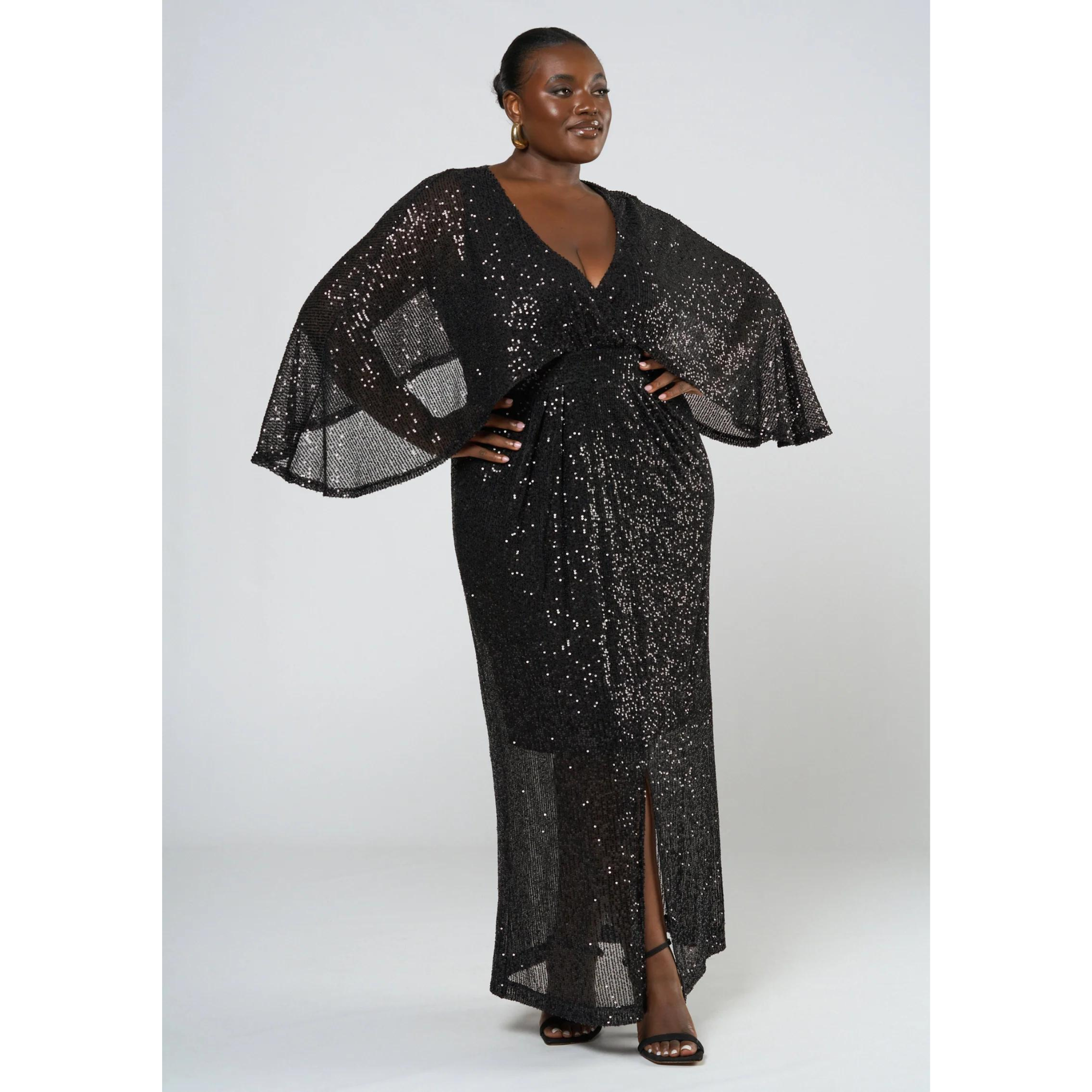 This stunning dress features a gorgeous sequin cape style silhouette that will have you shining all night long and it's statement maxi length adds an extra touch of sophistication. Dazzle at any party or event with the Red Carpet Ready Maxi Dress by Curve Project's Pink Dusk.