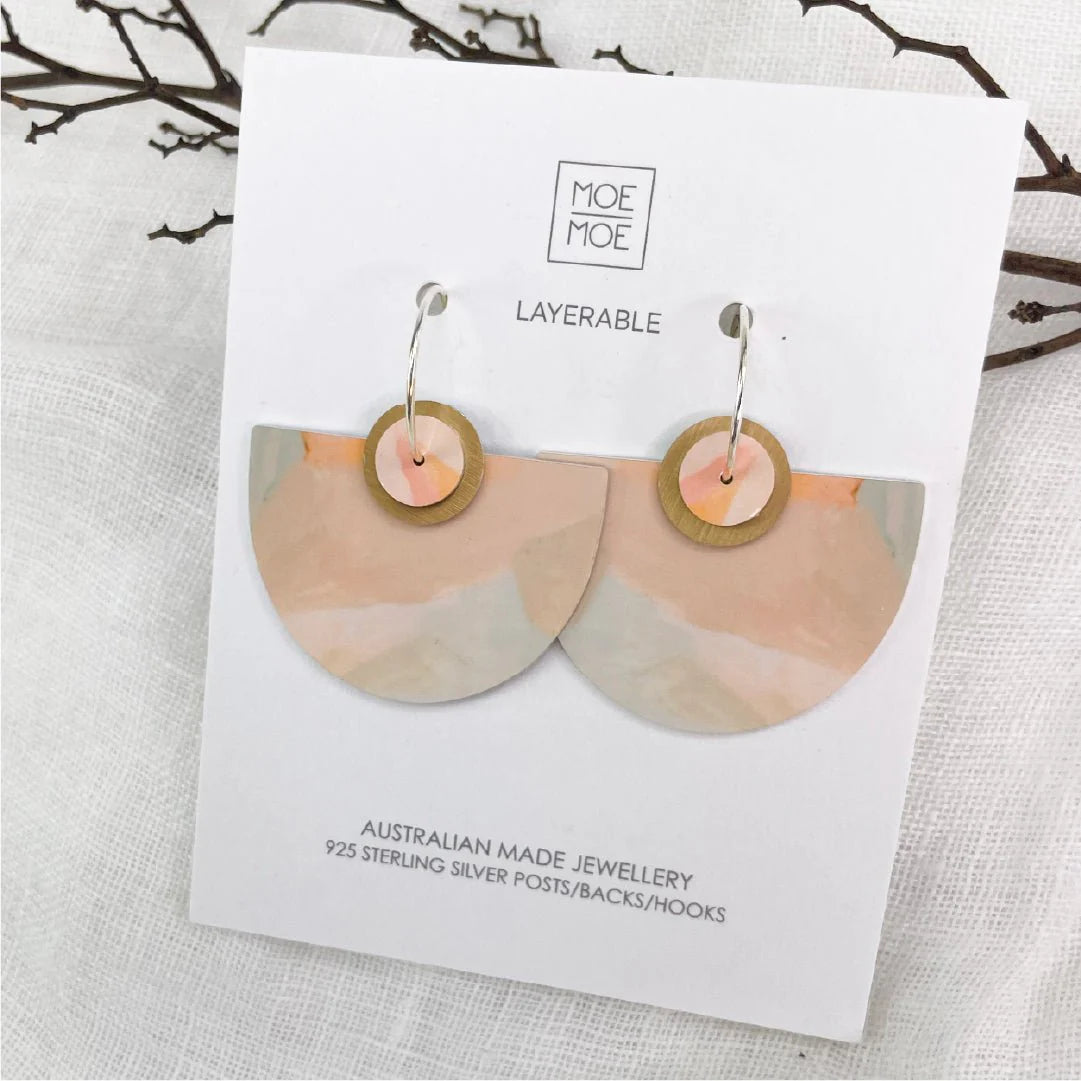Moe Moe devotees: this one's for you. A perfect blend of bold bell shapes and stunning artwork, this design represents Moe Moe at it's finest. Featuring sunset-inspired hues from Australian artist Kiasmin, these earrings are truly something special.