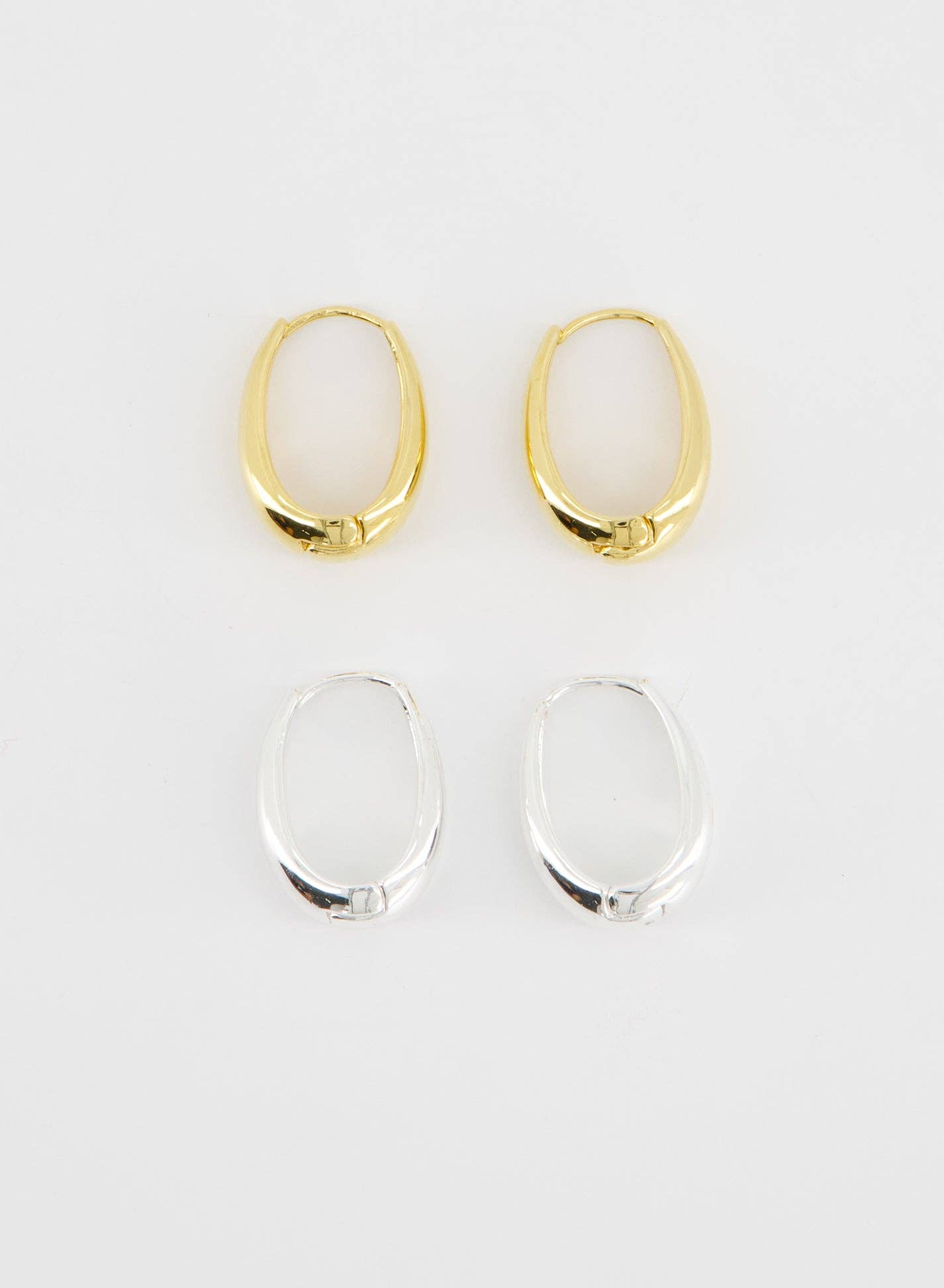 These earrings feature a teardrop-shaped silhouette that brings a soft yet modern edge to the classic hoop. Designed with a secure click-down clasp, they are lightweight and comfortable for extended wear.