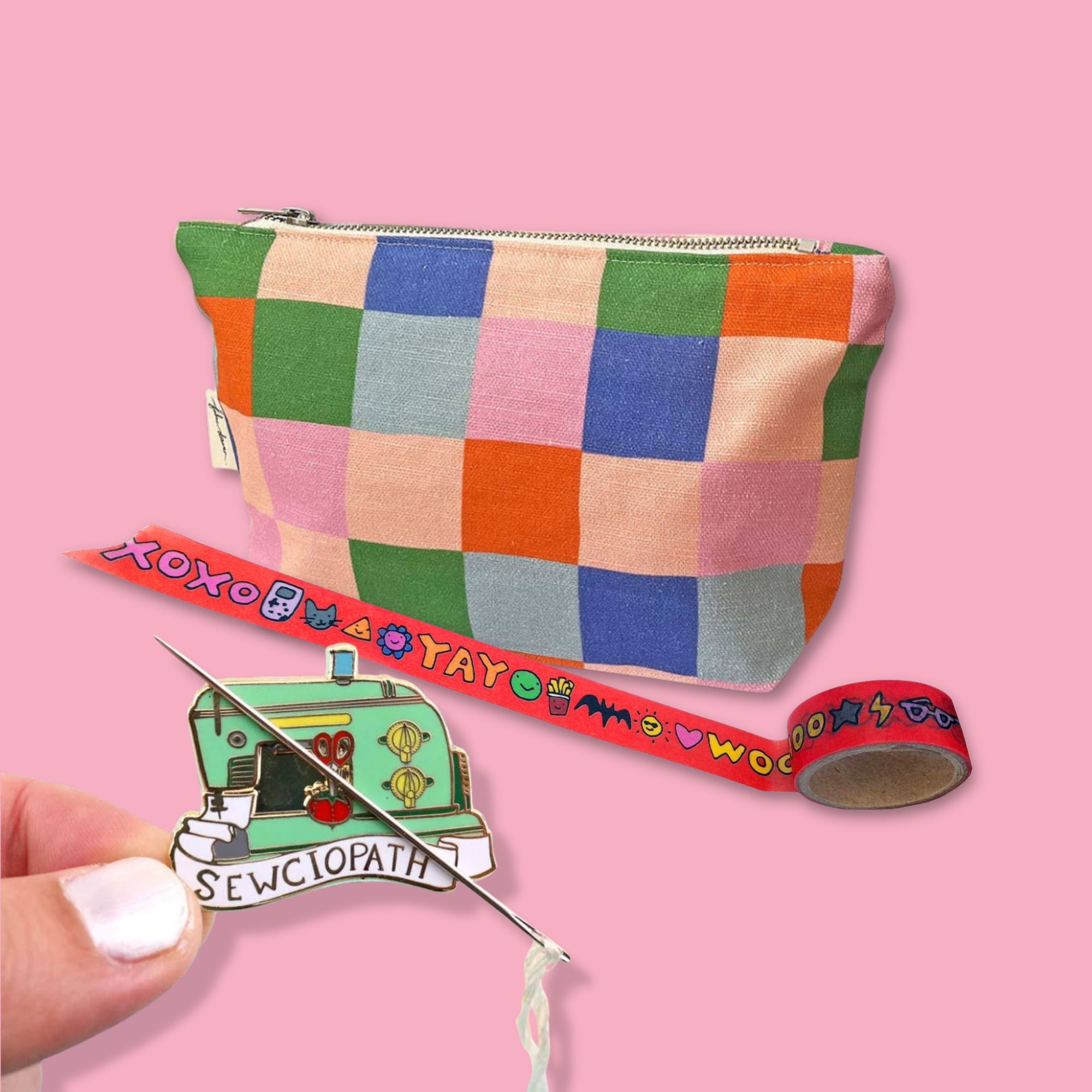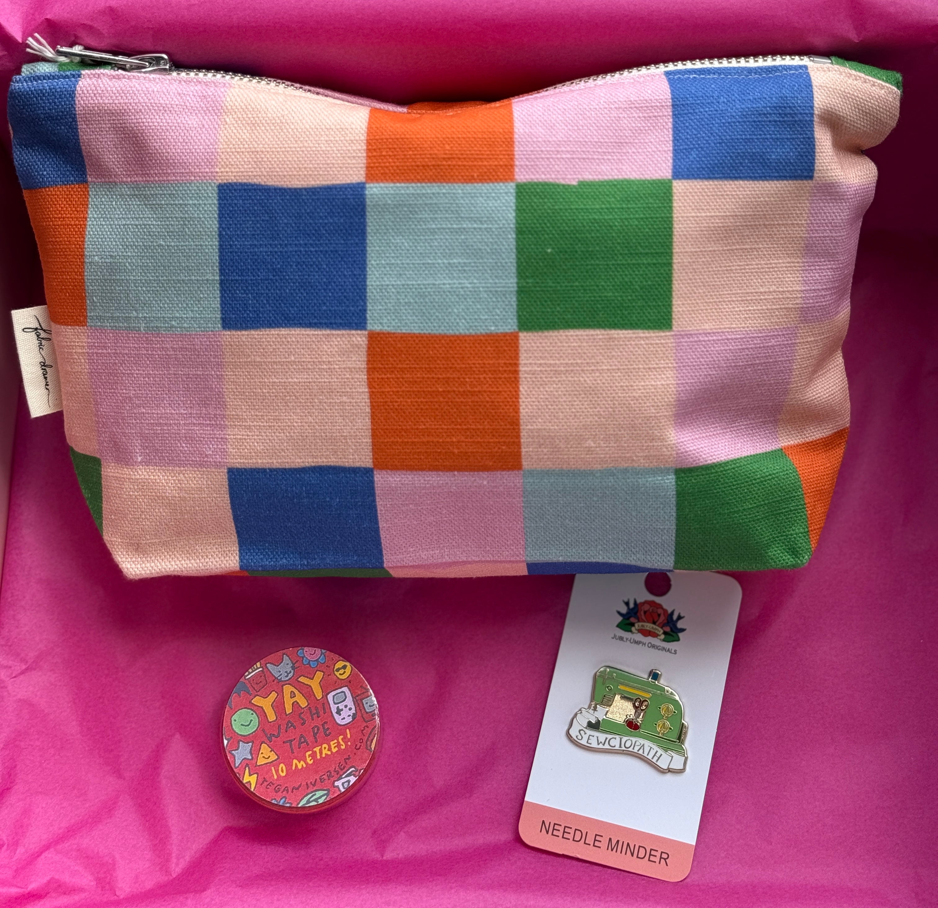 Three art-themed treasures thoughtfully curated in a beautiful gift box, featuring artwork designed by local artist Tegan Iversen. They'll receive a small handmade pouch to store their bits & bobs, a magnetic needle minder and some cute washi tape to use when wrapping their creations. Perfect for birthday, Christmas, or just because!