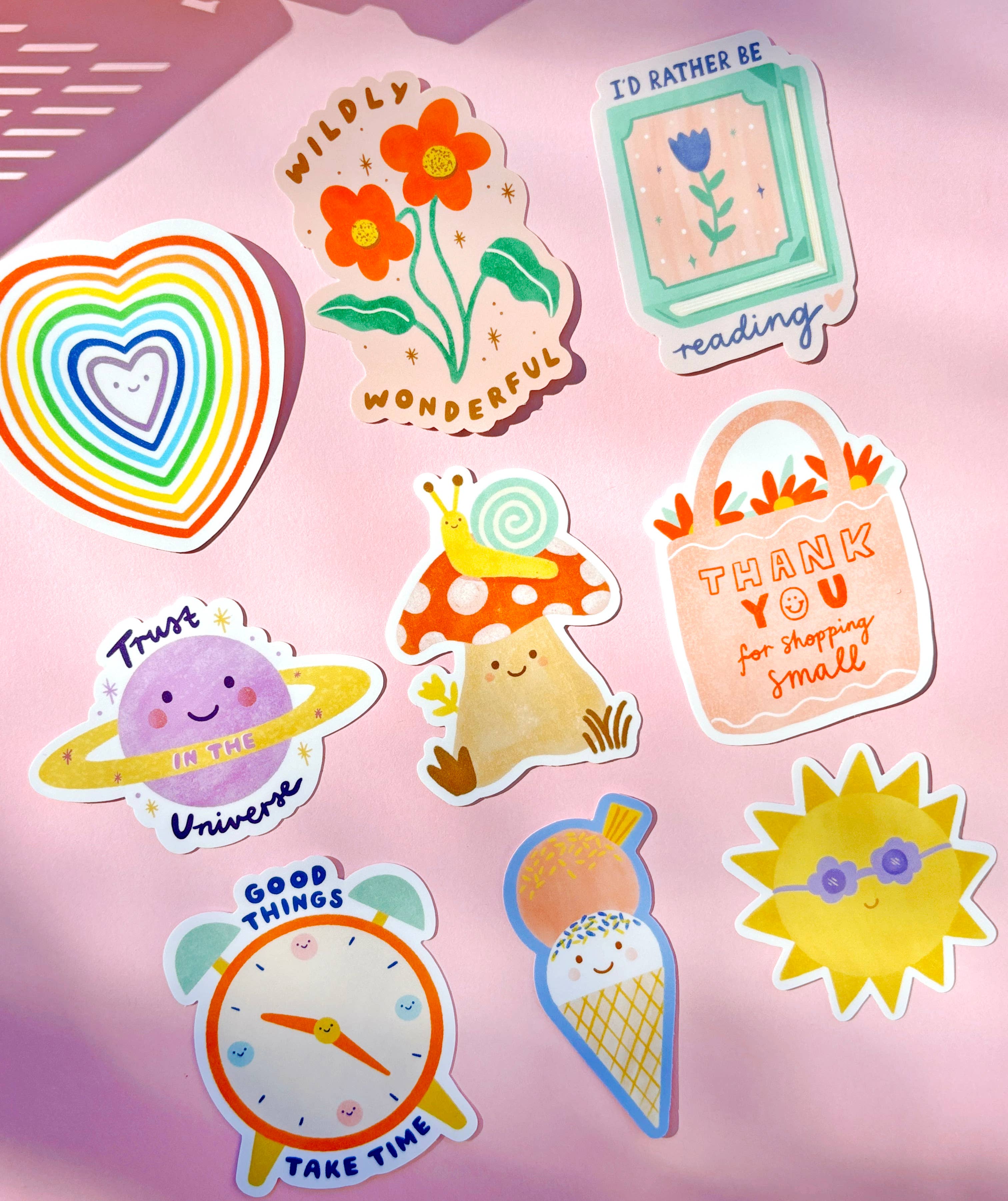 Let this positive sticker remind you to embrace the beauty and joy in the little things. Featuring bold, illustrated wildflowers with hand-lettered "Wildly Wonderful". Made from the highest quality vinyl, perfect for decorating your laptop, water bottle, notebooks, planner, phone case and more.