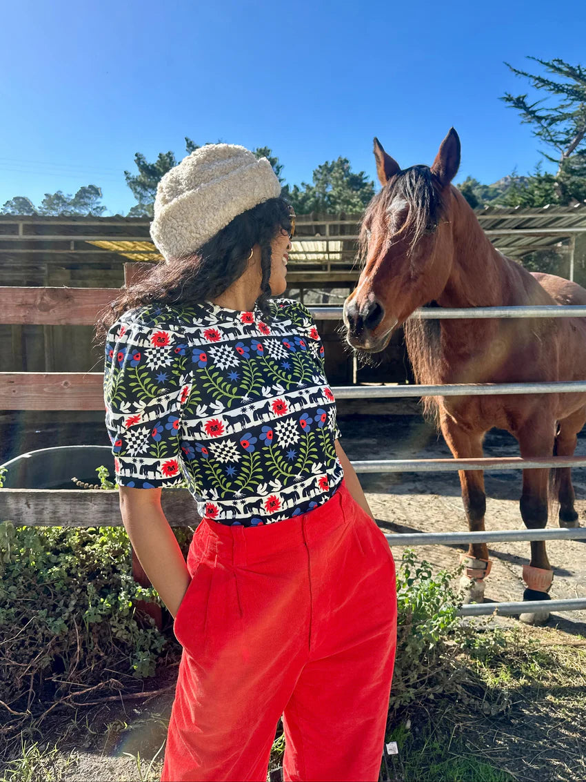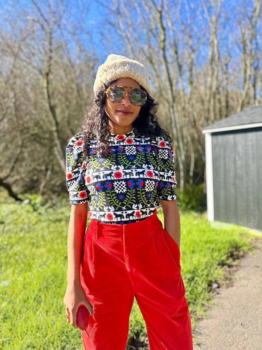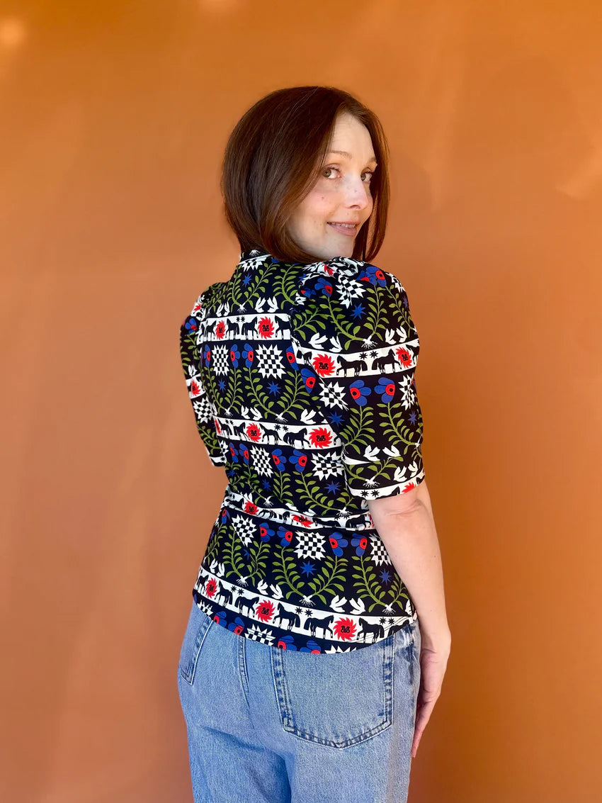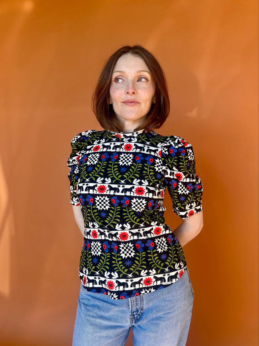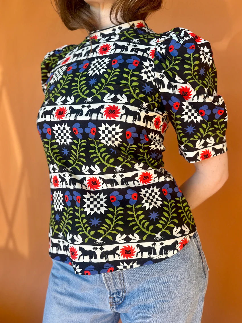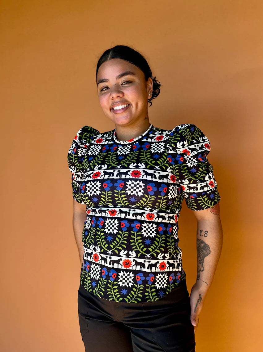 Go fancy and free in this easy to wear jersey top with feminine detailing. Made from Nooworks' soft stretchy jersey, the body of this top is fitted and perfect for tucking into higher waisted bottoms. It features a nice curved hip length hemline so it looks cute worn untucked too, and with perfect gathers at the shoulders that bring stylish volume to the airy short sleeves, your look will come together in a snap!