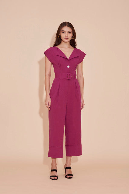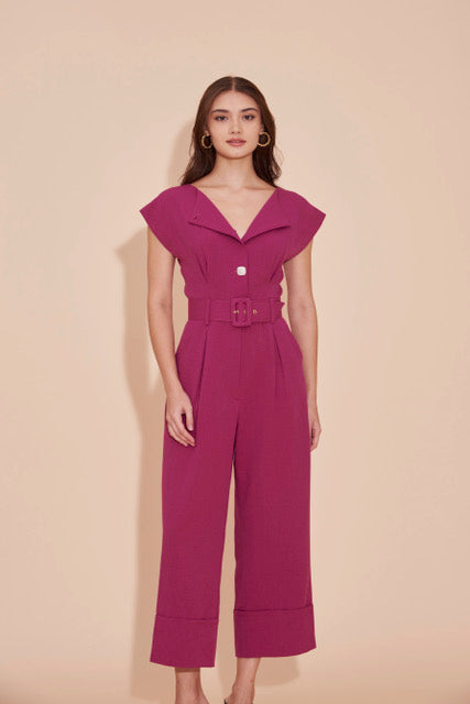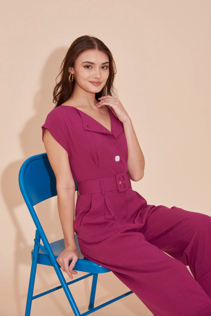 A versatile jumpsuit that's perfect for work and after hours. Wear it two ways β buttoned up as a classic boat neck, or a few buttons undone for a gorgeous deep V. And pop a long-sleeved blouse, crew or turtleneck underneath, and layer with your favourite cardi, for the ultimate trans-seasonal style.